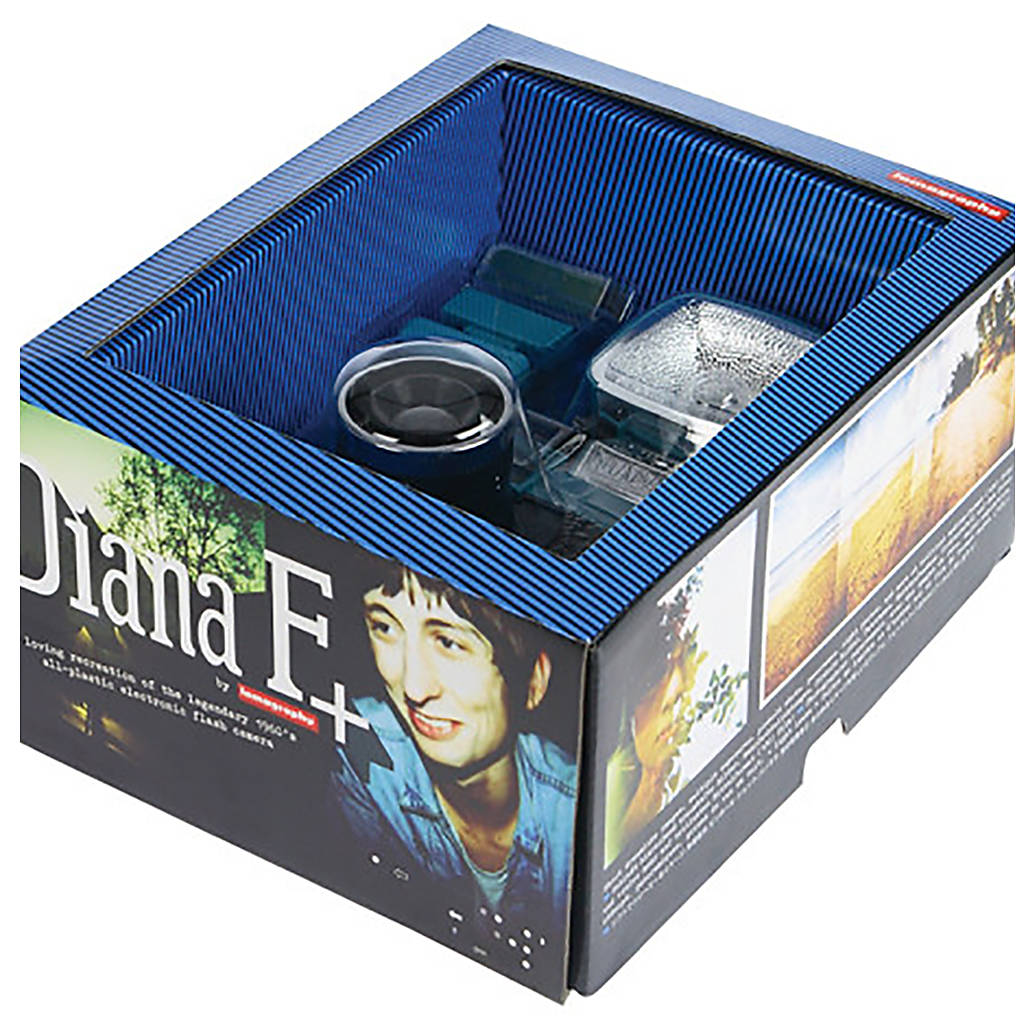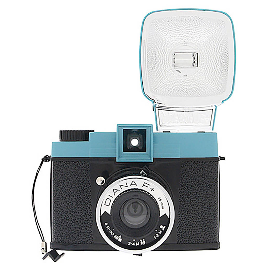 Lomography Diana F+ HP700 120 format medium format camera Includes removable 75mm lens Two shutter speeds Zone focusing system 12 and 16-shot modes Multiple and partial exposures Endless panorama mode Comes with pinhole function Color: Teal and Black